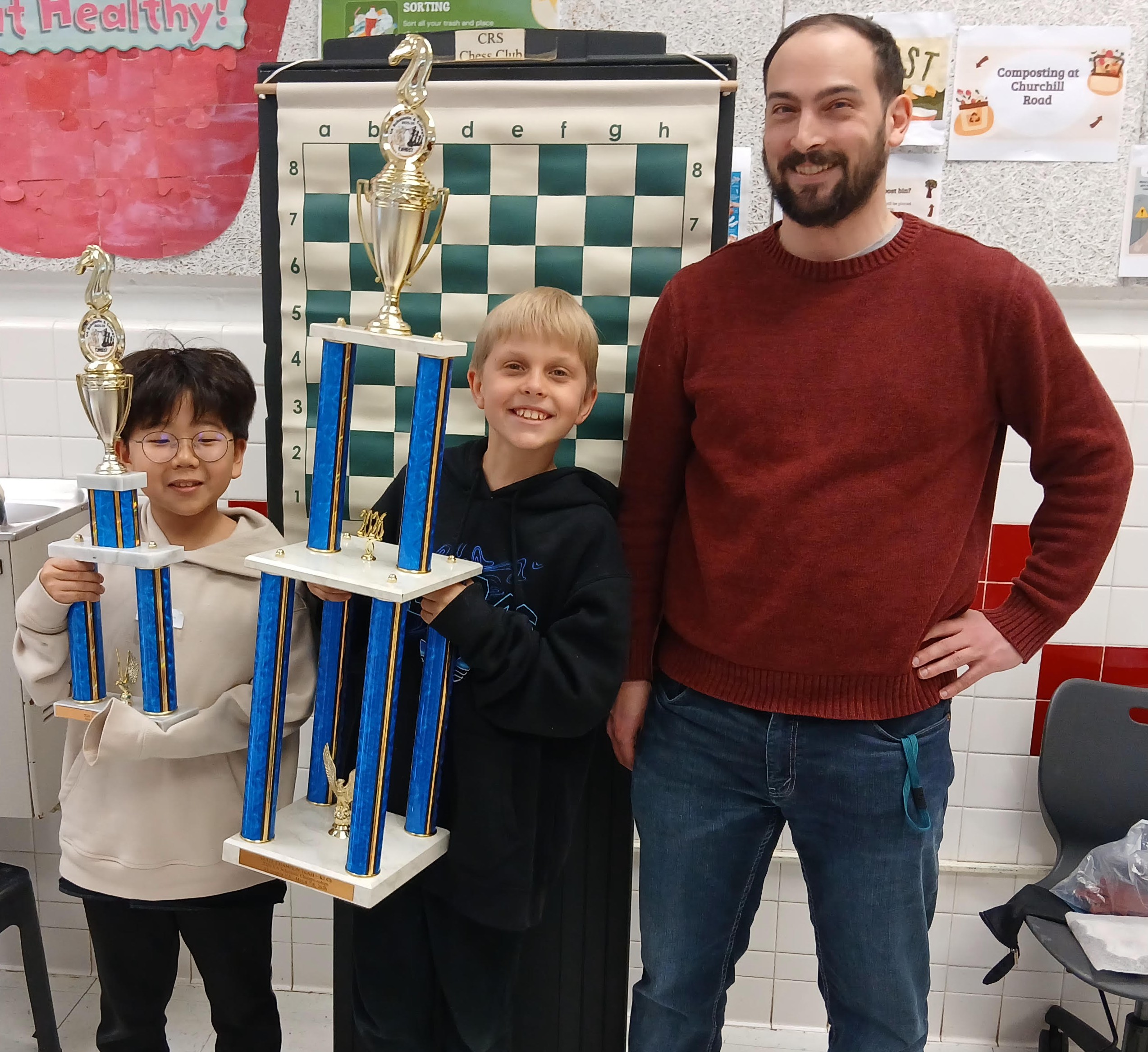 The kids who brought back trophies are justifiably proud of themselves. Colvin Run fifth grader Pinhang Gao won the overall K-8 championship, the youngest student in memory to win that honor. Churchill Road won the K-3 team championship, with Vlad Inchin and Sieon Jeon both bringing home individual trophies that are close to their height (4th and 10th places), Spring Hill Elementary tied for first place in the K-5 Championship.